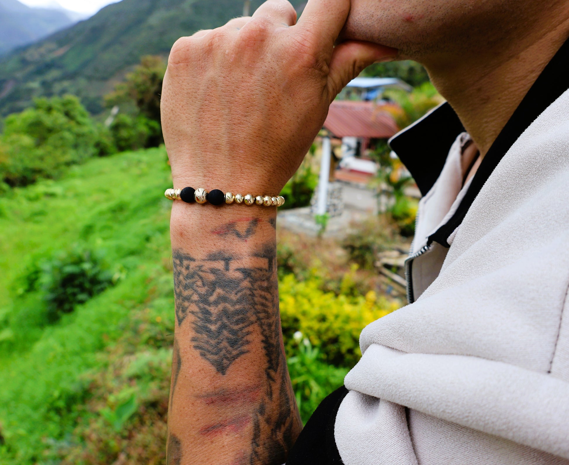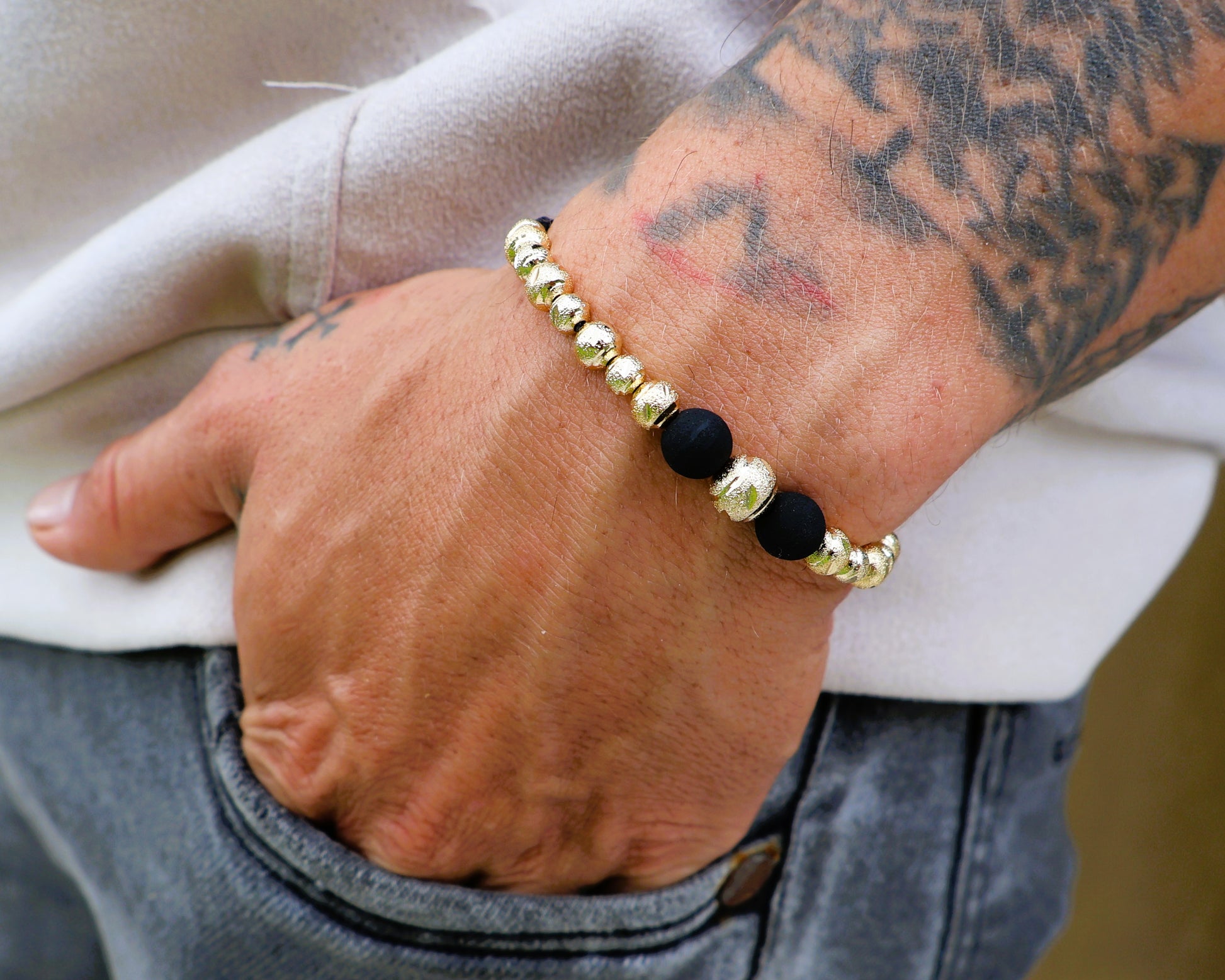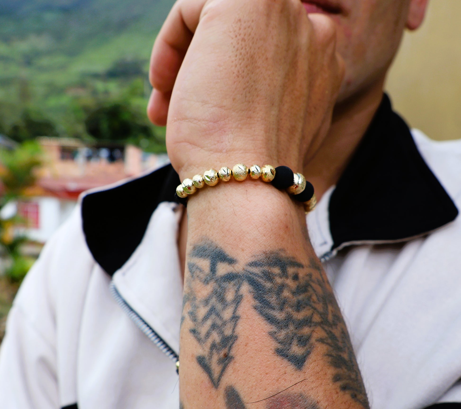 La Manilla Italo-diamantada es el accesorio perfecto para elevar cualquier outfit con un toque de lujo y distinción. Con balines de oro laminado finamente tejidos, su diseño ajustable se adapta cómodamente a cualquier muñeca, haciendo de cada uso una declaración de estilo.
