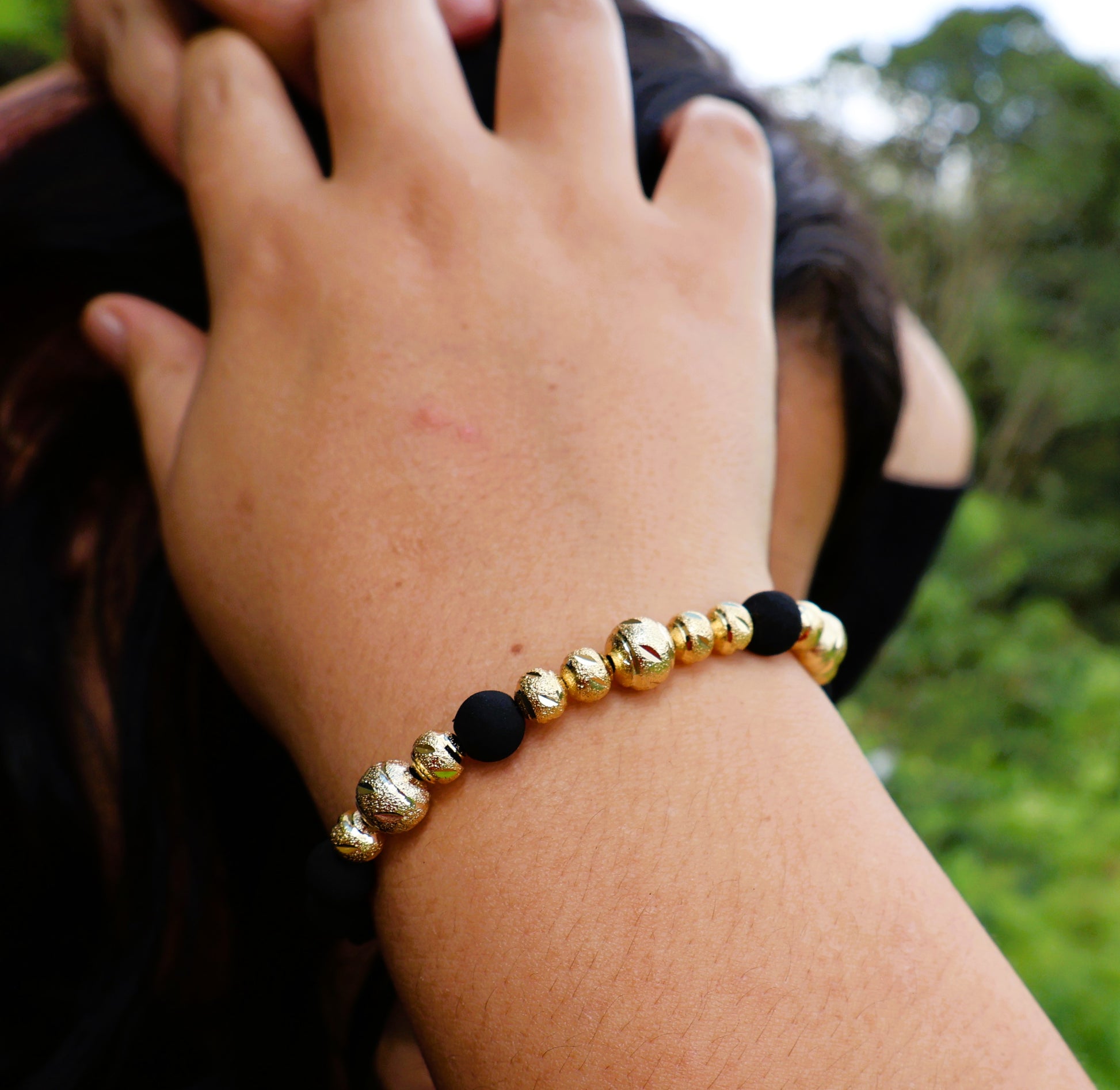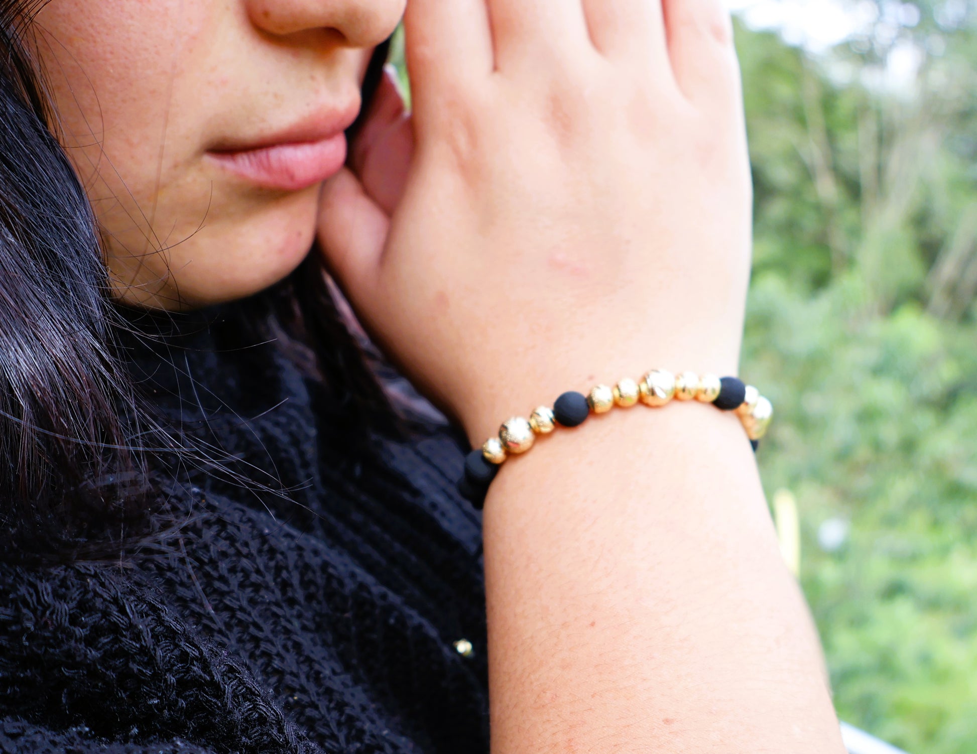 La Manilla Limited 11B es el accesorio perfecto para elevar cualquier outfit. Con delicados balines de oro laminado tejidos en la manilla y un ajuste adaptable, se adapta a cualquier tamaño de muñeca con comodidad y estilo.